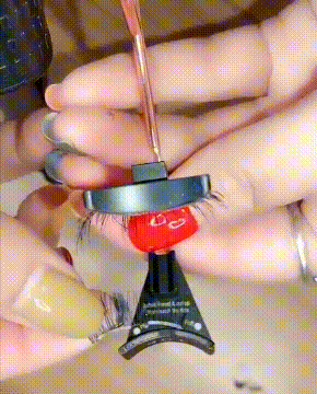 • Place eyelashes onto the magnet of the tool. Be sure the magnetic strip face each other.