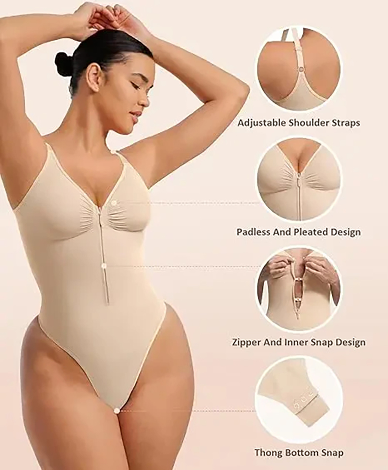 ✅ The front center zipper design makes it easy and effortless to put on and take off, solving the traditional shapewear problem. It's convenient and practical: